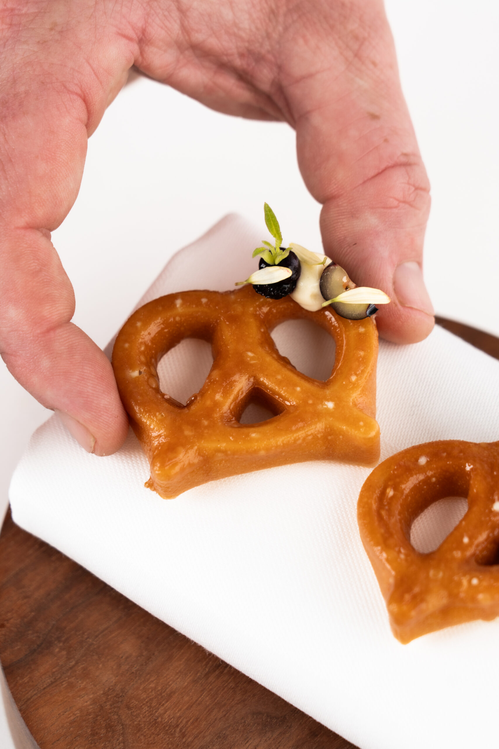 The pretzel is a true classic. This instantly recognizable shape is usually known as a salty bread or crunchy snack, but now the interpretation is entirely up to you. You can take it in any direction, and it is hard to go wrong. Fill it with something savory, or serve it as a playful bite alongside your final dessert. Surprise your guests with a creation they will not forget. Nostalgia is guaranteed!