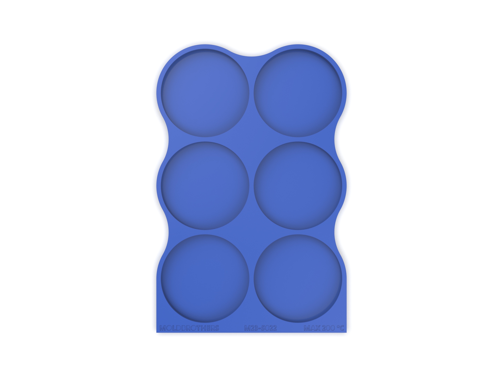 A high-quality silicone mold in the shape of a disc. The mold contains 6 shapes and is 100% food grade.