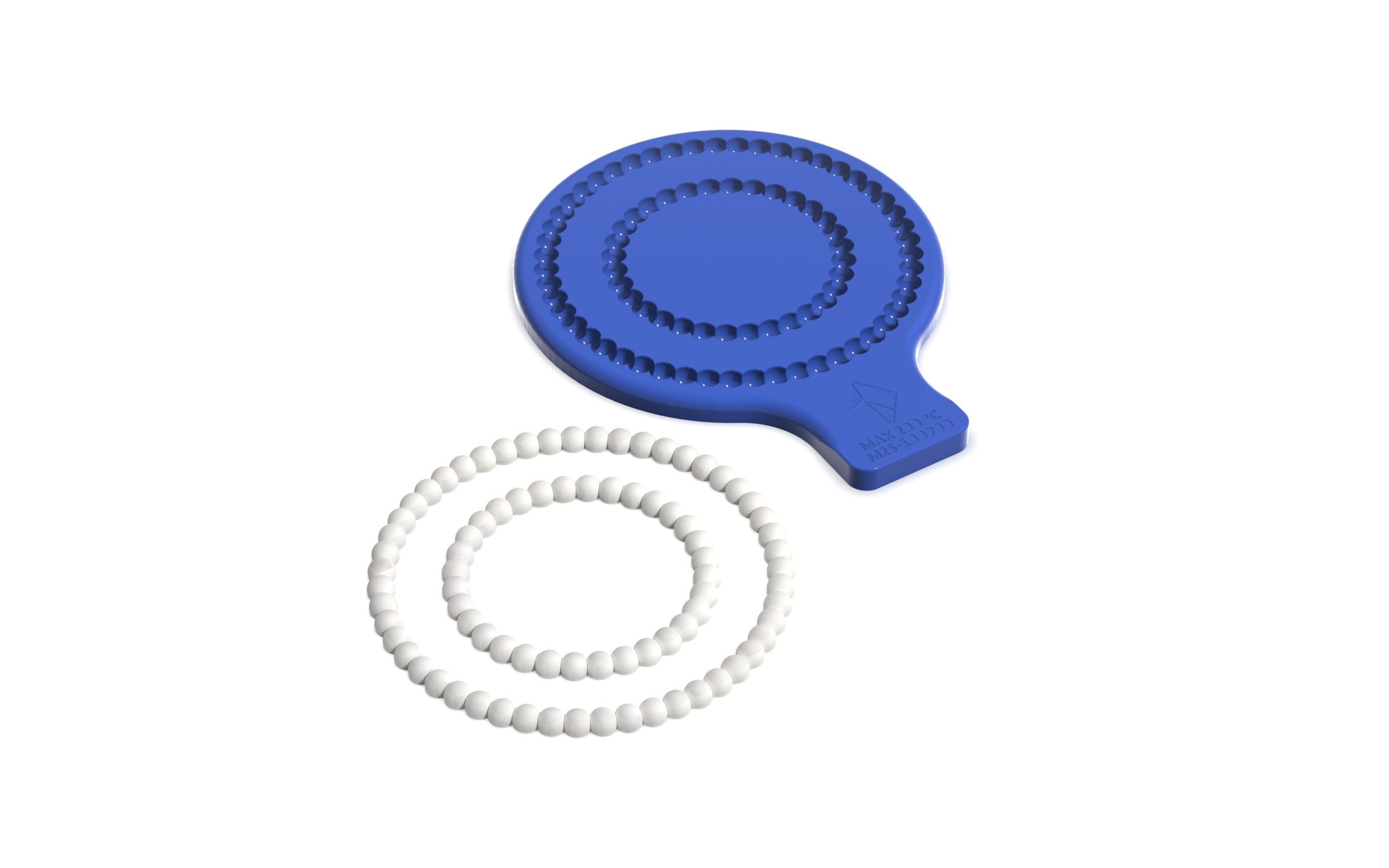 A high-quality silicone mold shaped like two rings, consisting of small “piped” spheres. The mold features one larger and one smaller ring and is made from 100% food-grade silicone.