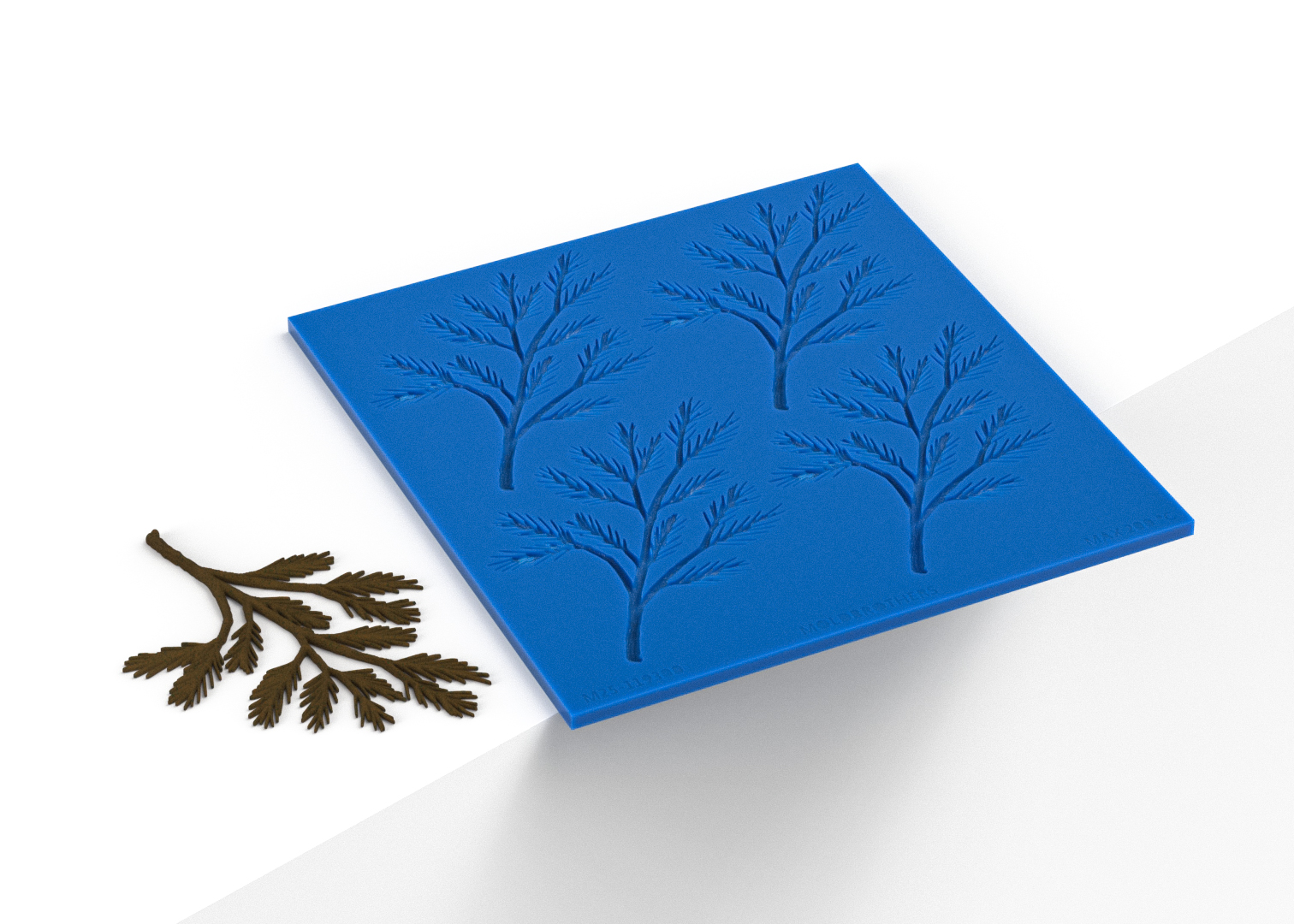 A high-quality silicone mold shaped like realistic pine tree / branche. The mold features four shapes and is made from 100% food-grade silicone.