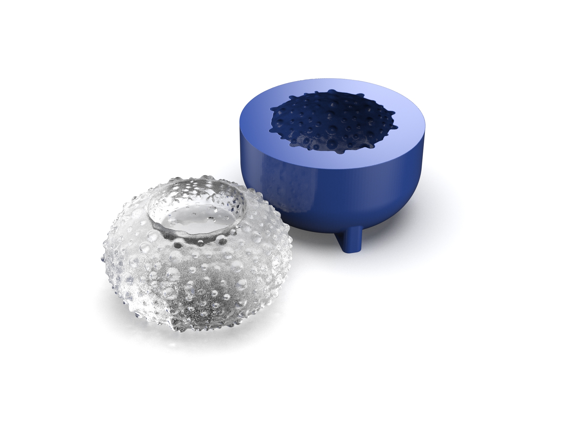 A high-quality silicone mold shaped like a realistic sea urchin ice sculpture, designed specifically for serving caviar. The mold features a single shape and is made from 100% food-grade silicone.