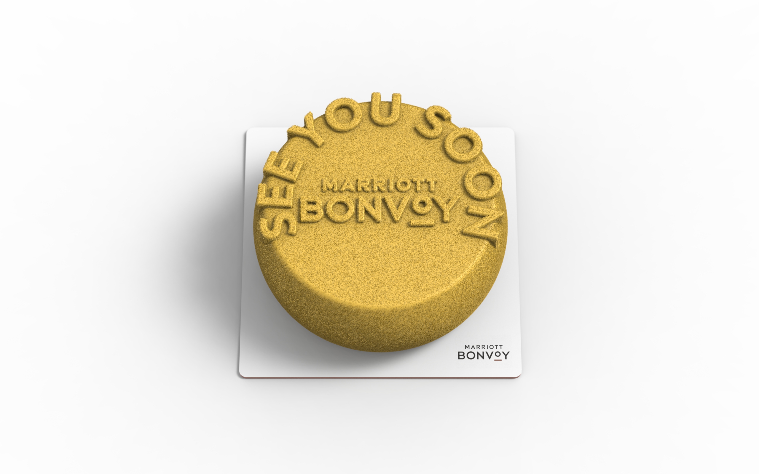 A high-quality, custom-made silicone mold, specially designed for Marriott Bonvoy—perfect for thanking your guests and letting them know Marriott Bonvoy looks forward to welcoming them again. Made from 100% food-grade silicone.