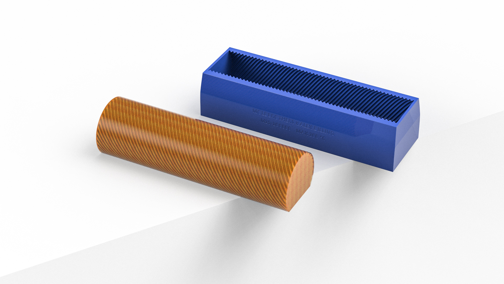 A high-quality silicone mold with the shape of a twisted cylinder, designed by Alex Dilling**. The mold features one large shape (for 8 persons) and is made from 100% food-grade silicone. It can withstand temperatures ranging from -40°C to +200°C, making it suitable for use in both (shock) freezers and ovens.