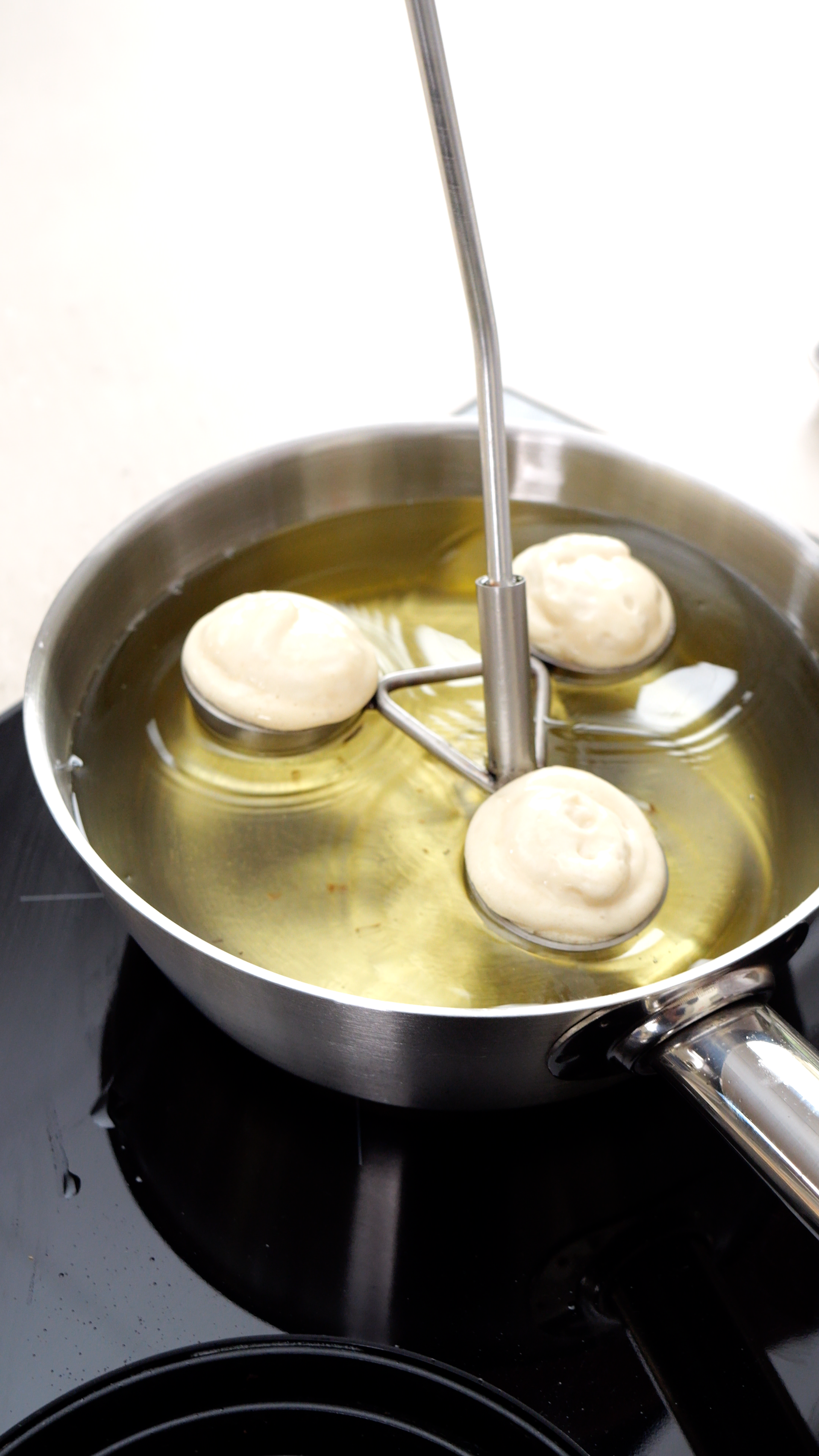 Beignets are the famous little balls that frequently appear in top culinary establishments. Typically made one at a time using a spoon, the downside is that you can only do one at a time. We now have the solution! Make three beignets in no time at all. Fill them, fry them to perfection, and voila, three beignets at once! *Limited quantity available.