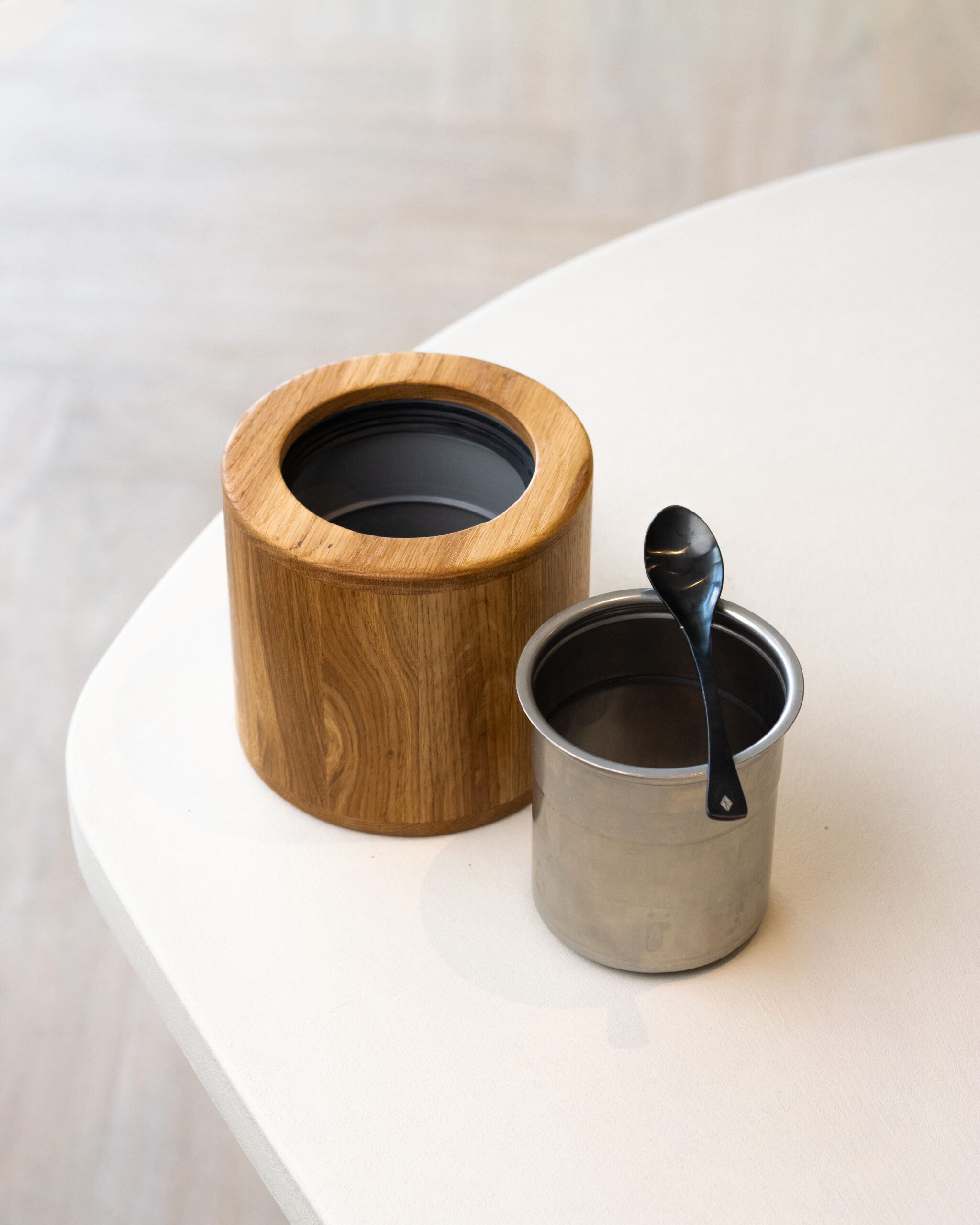 A common struggle for culinary restaurants is bringing the metal container of the ice machine to the table. The inside of the container is not clean, the outside is dirty, and there is condensation on it. We have the solution! With this wooden holder, featuring an anti-slip edge, handcrafted in the Netherlands from oak wood. Handcrafted for the best quality and attention to detail. Thanks to this new innovative product, you can provide your guests with the best table experience without any worries!